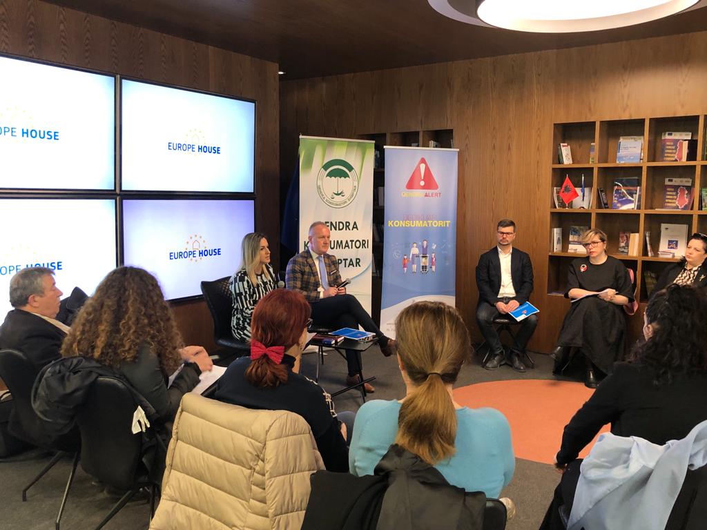 “Në datë 15 mars 2022, në ambientet e “Europa House”, me rastin e 15 Marsit Ditës Ndërkombëtare të Konsumatorit, u zhvillua një takim i përbashkët ndërgjegjësues, me përfaqësues të shoqatave të mbrojtjes së konsumatorëve, dhe të shoqërisë civile të fokusuar në mbrojtjen e të drejtave të konsumatorëve: Qendra e Konsumatori Shqiptar; Qendra Alert; Konsumatori në fokus; Qendra Peshëmatje çmime; Instituti për Zhvillim dhe Iniciativa Qytetare; Lëvizja Evropiane Shqiptare, Shoqata Mikrofinanciare Shqiptare, si dhe me përfaqësues të institucioneve shtetërore: Ministria e Financave dhe Ekonomisë, Autoriteti Kombëtar i Ushqimit; Inspektorati Shtetëror i Mbikëqyrjes së Tregut; Agjencia e Mbrojtjes së Konsumatorëve/Bashkia Tiranë, etj. Gjithashtu, në takim mori pjesë dhe përfaqësuesja e Zyrës së Delegacionit të KE në Tiranë.